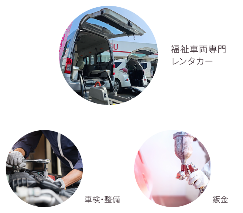 レンタルや車検・整備、鈑金などに幅広く取り組み、